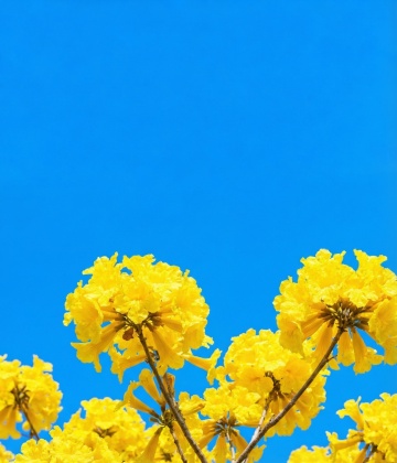 清新明快的双色设计风,黄花蓝空交织自然与水彩质感,实景感十足,传递春日清爽清透之韵。