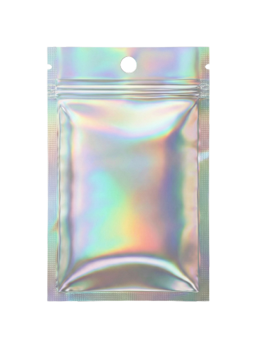 一个白色哑光材质的长方形自立袋包装,袋身中央有轻微的弧形内凹设计,边缘有一圈银色亮边,底部有细密的锯齿状压纹封口,整体呈现出简洁干净的包装设计感,高分辨率3D渲染效果,光影柔和,在白色背景下独立展示,具有现代简约的产品包装视觉风格。