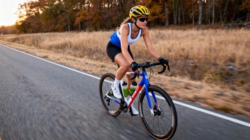 三个国外友人拼搏路上骑行单车