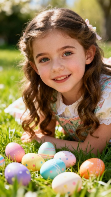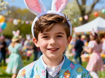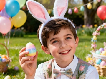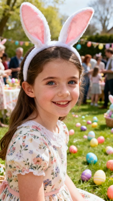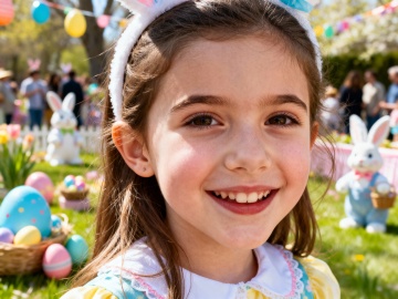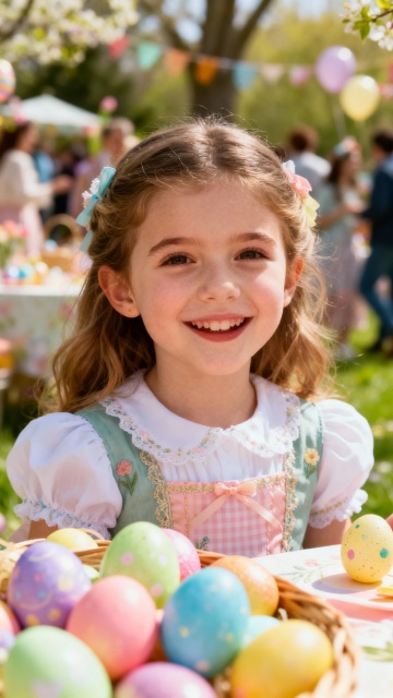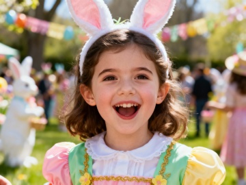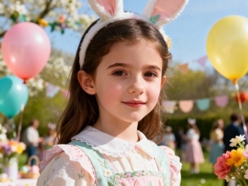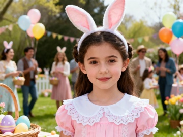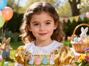 复活节背景,户外,春日氛围,欧美漂亮小女孩,复活节服饰,脸部特写,派对,热闹,大师级拍摄
