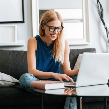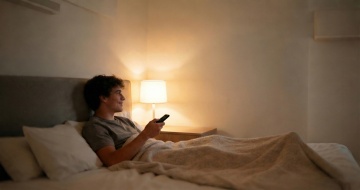 年轻棕发外国女性,穿浅灰背心 + 紧身裤,躺在沙发上,她手持现代智能手机,神态放松惬意。 场景:现代简约客厅,背景含白色墙面、带小盆栽的浅色置物架,地面是浅棕木地板 + 浅灰地毯,沙发旁设白色小圆桌(浅木腿)。 风格:清新明亮的生活类产品写实风格,质感真实自然。 色彩:以白、浅灰、浅棕浅色系为主,色调柔和明亮,光线为均匀柔和的室内自然光感。 构图:平视略高视角,人物露出全身,构图舒展、人物五官清晰,背景简洁不杂乱