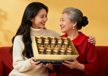 竖版构图,中秋高端礼盒主视觉海报,整体采用霁蓝与鎏金渐变色调,背景为流动的祥云托举着一轮满月的工笔意境,月光如水银倾泻而下。画面中央是双层六角形提篮礼盒,上层以螺钿工艺镶嵌玉兔捣药图案,下层浮雕缠枝莲纹,礼盒正面悬挂着写有"中秋雅韵"的洒金红绸吊牌,礼盒置于雕花紫檀木座上,木座旁散落着几颗晶莹的露珠。前景为青瓷碟中摆放的广式莲蓉月饼、苏式鲜肉月饼和一盏燃着檀香的三足铜炉,月饼酥皮层次分明,铜炉青烟袅袅上升与背景云气融为一体。海报上方主标题"月满人间·礼传心意"采用瘦金体书写,副标题"经典双黄莲蓉 × 黑松露流心奶黄"以烫金小楷呈现,整体通过冷金色勾勒轮廓,在深邃的霁蓝背景中形成尊贵典雅的视觉焦点,传递出匠心手作、礼赠臻品的中秋文化底蕴。