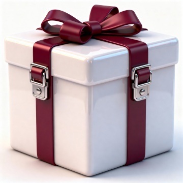 一个打开的红色礼盒,盒盖向两侧翻折,盒内涌出多个大小不一、装饰着金色缎带蝴蝶结的红色礼物盒和红色球形饰品,礼盒底部和周围散落着金色铃铛、红色花瓣和金色五彩纸屑,整体呈现出欢庆、惊喜的氛围,采用3D渲染技术,具有光滑的材质质感、明亮的高光和清晰的阴影,主色调为红色与金色的搭配,光线从上方照射,营造出立体感和华丽感,白色背景干净简洁,突出主体。