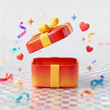 简约现代风格,纯色背景,规整排布的单一元素图案,黄色礼盒带有立体金色蝴蝶结,礼盒内打开的红色红包与散落的金色硬币,周围有飘起的金色优惠券,整体采用明快的红黄渐变色调,光滑的材质表现,柔和的高光与阴影,营造出喜庆促销的氛围,元素布局对称平衡,视觉层级清晰,信息传达直接高效。