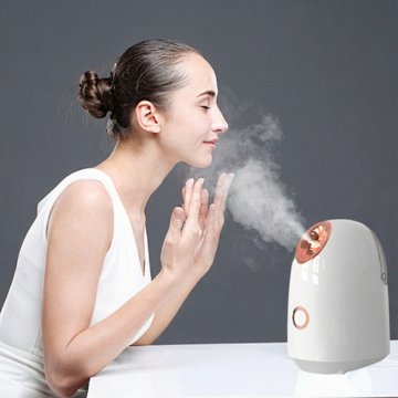 未来感3D渲染,轻拟物风加湿器悬浮于镜面之上,玻璃质感球体点缀,梦幻粉紫渐变背景,科技与柔美交融,清透柔和,虚拟现实美学呈现。