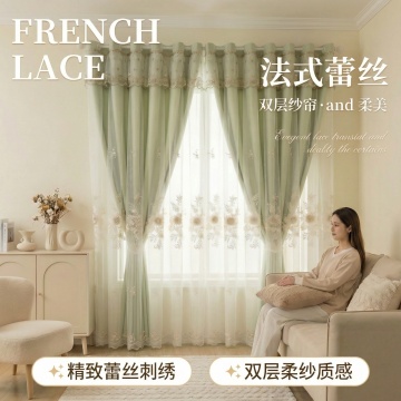 将图中窗帘的颜色变成淡绿色,不要改变窗帘外面一层纱的颜色,只改变里面的一层布,其他保持不变