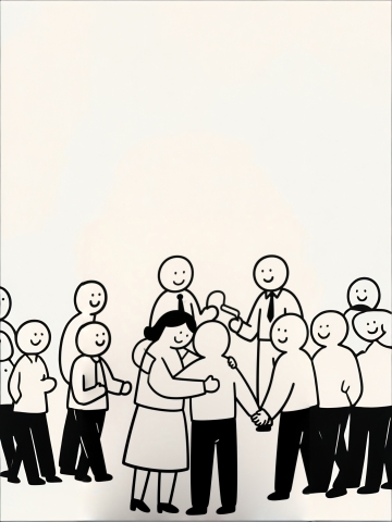 纯白背景上,6个不同性别、年龄的人物黑色剪影,保持简约现代风格,人物姿态各异:商务女性双臂交叉站立、老年男性拄杖远眺、儿童跳跃姿态、青年男性大步流星、中年女性优雅提裙、少年单手插兜侧身,所有剪影边缘平滑无细节,以2x3网格规整排布,整体视觉统一,每个剪影造型独特且互不重复。