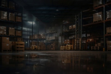 超写实风格的大型现代化仓库内部场景,采用纵深透视构图,高天花板上可见黑色金属桁架结构与红色横梁,整齐排列的白色筒灯提供明亮均匀的照明,地面为光滑的深灰色水泥材质,两侧是高耸的金属货架,货架上堆满了各种颜色的纸箱和货物,形成丰富的色彩层次,中央通道宽敞,整体氛围专业、有序且具有工业感,展现不同样式仓库的内部布局,包括货架排列方式、货物堆放形态及空间结构的细微变化。