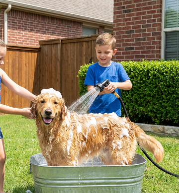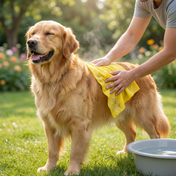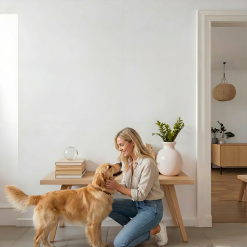温馨光影中,金毛与猫咪静卧窗边,3D重拟物风格细腻呈现实木地板与柔和粒子光斑,营造冬日暖阳下的舒适实景感。