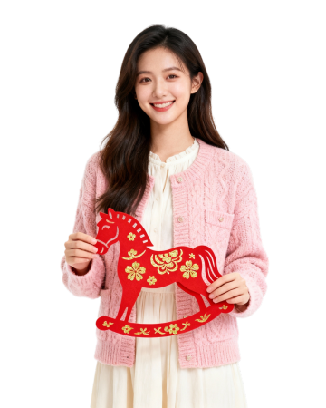 红金喜庆写实风,黑白拼色包包与马年春联、红灯笼等新年元素结合,红火热烈,尽显节日轻奢氛围。