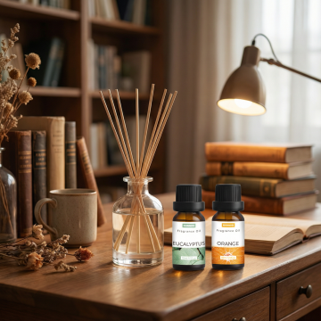 帮我生成一张图,图里的情景是在车里,有一瓶透明的悬挂式的香薰瓶,里面的液体是油状的,前车窗玻璃的台子上有图1和图2精油瓶,要求精油瓶瓶身的标签纸不要变动,图片尺寸1:1