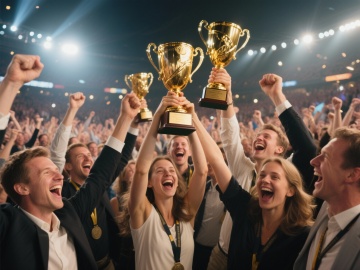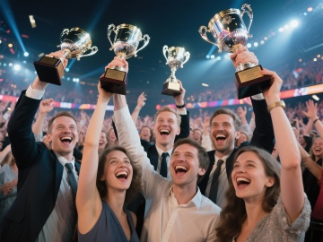 很多国外成功人士高举奖杯庆祝