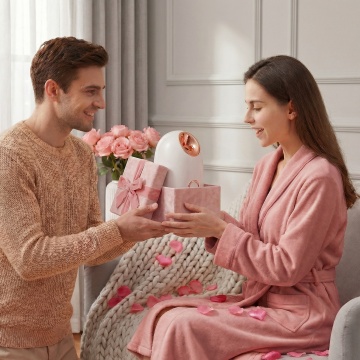 美妆产品宣传海报,整体采用清新通透的蓝白渐变色调,柔和的顶部光源营造出水润光泽感,3D立体展示的白色软管状护肤品置于圆形白色平台上,周围点缀白色花朵和绿色叶片,画面上方有产品核心功效的蓝色圆形图标与文字说明,中部包含分点介绍的肌肤问题示意图与解决方案,下方通过水滴、透明气泡等元素展现产品水润质地,搭配清晰易读的无衬线字体,整体排版层次分明,信息传达高效,符合护肤品针对敏感肌、追求温和清洁与保湿人群的宣传目的,保持相同设计风格与视觉元素,替换展示不同护肤品。