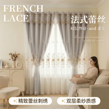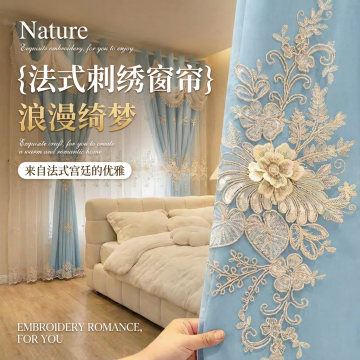 将图中窗帘的颜色变成淡蓝色,不要改变窗帘外面一层纱的颜色,只改变里面的一层布,其他保持不变