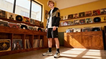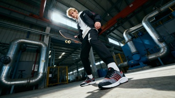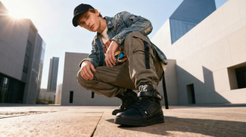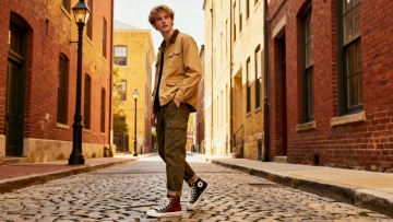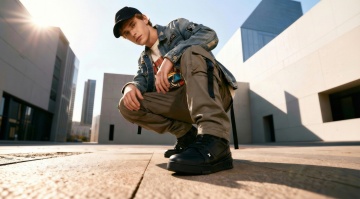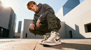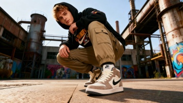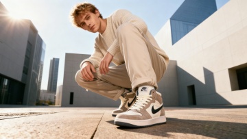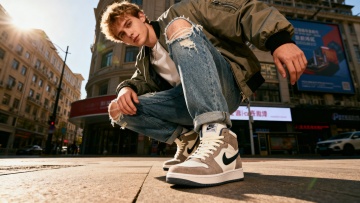 生成3张图片,长宽比例为16:9,图片内容为一个时尚欧洲男青年,穿着双中帮时尚潮鞋
