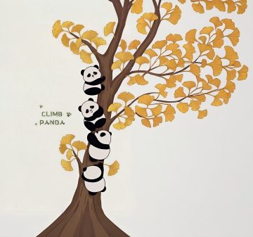 软3D风格的可爱熊猫坐在毛线地球之上,手持毛线团,拟人化设计充满梦幻与温馨感,刺绣风细节与毛发生长效果营造出趣味十足的童话氛围。