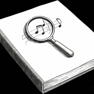 极简数字艺术风格,柔和的深蓝色背景,中央由流畅纤细的白色曲线环绕,曲线中点缀着多个发光的音乐符号,包括高音谱号、八分音符、四分音符和升号,所有符号均呈现出明亮的青绿色光芒,整体构图保持对称平衡,线条轻盈飘逸,营造出宁静而富有韵律感的氛围,无任何文字元素。