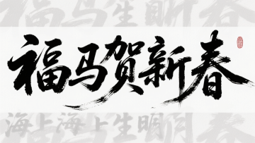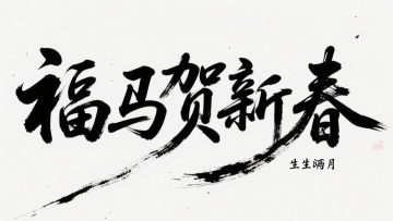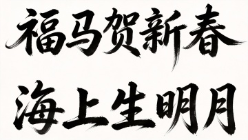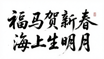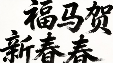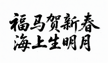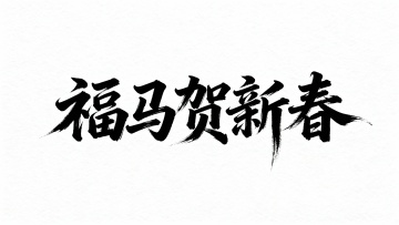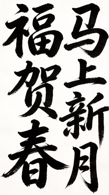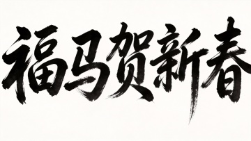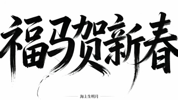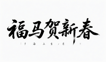 参考图中黑色字体的字形,生成文字“福马贺新春”,白色背景