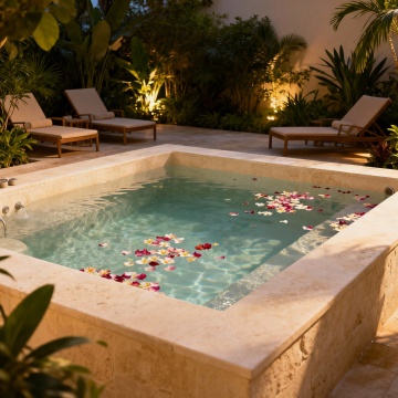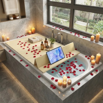 极简主义风格浴室设计,柔和的米白色墙面,温暖的自然光透过白色窗帘洒入,形成柔和的光影效果,地面铺设浅色大理石瓷砖,中央放置一个造型简约的独立式白色浴缸,黄铜色金属水龙头,浴缸旁地面随意摆放一条浅灰色柔软毛巾,右侧角落有一盆绿色植物置于编织篮中,整体氛围宁静、优雅、舒适,布局简洁开阔,空间感强,材质质感细腻,色彩和谐统一,营造出高级而温馨的沐浴环境。