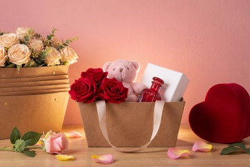 梦幻粉色渐变礼盒,透明玻璃质感搭配柔美蝴蝶结,软3D风格呈现甜美可爱氛围,点缀花朵与彩带,节日感十足。