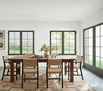 3D渲染风格室内场景,整体采用极简主义设计,主色调为纯净的米白色与柔和的浅米色,搭配低饱和度的绿色地毯和橄榄绿、暖橙色靠垫形成和谐的色彩层次。明亮的自然光从拱形窗户洒入,在墙面和地面形成清晰的光影交错效果,营造出温暖、宁静而通透的氛围。画面中包含一个米白色的模块化沙发,沙发上放置着不同颜色和材质的靠垫,沙发旁有一盆绿色植物增添生机。墙面设计简洁,一侧有垂直条纹装饰元素,地面铺设浅色木地板,整体构图遵循对称美学与三分法原则,空间感开阔,细节质感细腻,光线柔和自然,呈现出舒适、简约而富有设计感的居住环境。