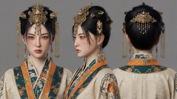 古典中式3D角色设计,融合刺绣、鎏金与浮雕工艺,以奢华面料呈现优雅唯美之姿,展现东方美学的极致韵味。