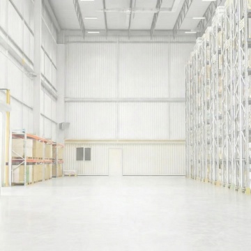 超写实主义摄影风格,高清晰度,明亮自然光从顶部天窗和两侧高处窗户均匀洒落,光线柔和无强烈阴影,整体色调以工业灰、金属银、纸箱棕黄为主,辅以局部亮色点缀。纵深构图,中央是洁净光滑的浅灰色环氧地坪通道,两侧高耸的金属仓储货架整齐排列至画面尽头,货架上堆满不同尺寸的棕色纸箱,部分纸箱贴有蓝色或黄色胶带标签。不同样式的现代化仓库内部场景,保留金属货架结构和整齐堆叠的纸箱核心元素,可替换为具有不同布局(如U型货架、多层阁楼式货架)、不同仓储设备(如叉车、传送带)或不同货物类型(如塑料托盘、金属容器)的仓库环境,通道尽头可设置不同的墙面设计或仓库门样式,保持空间的通透感和工业仓储的秩序感,画面干净整洁,细节丰富,具有强烈的空间纵深感和真实的材质质感。