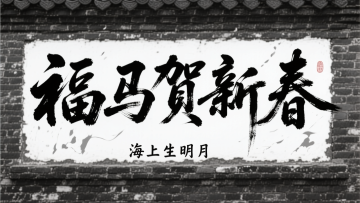 参考图中黑色字体的字形,生成文字“福马贺新春”,白色背景。字形可以再飘逸个性一些,增加一些拖尾和粗细变化