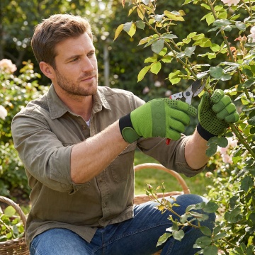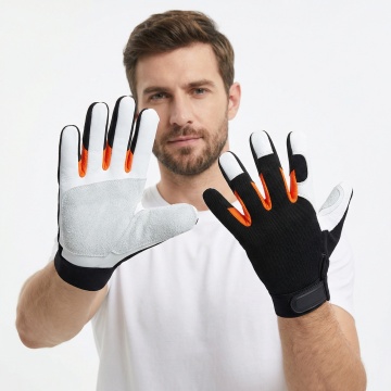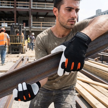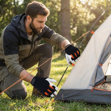 保持手套细节不变,分清正反面,一个外国帅哥穿着这双手套在展示细节,白底图