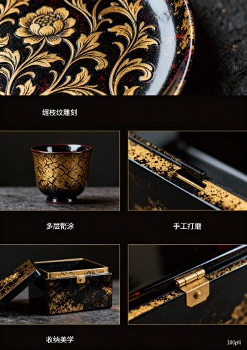 核心风格要求(所有页面通用前缀):国潮风,融合大漆非遗技艺元素(漆色、漆纹、漆工艺细节),现代简约审美,色彩以大漆经典色(朱红、乌黑、明黄、石青)为主,搭配低饱和辅助色,画面细腻有质感,版式干净留白合理,符合品牌年轻化定位,高清商业宣传册质感,300dpi,适合印刷第1页:封面提示词:国潮风品牌宣传册封面,主体展示“漆造”品牌Logo,Logo融入大漆髹涂纹理,背景为渐变朱红大漆底色,点缀细金漆线条勾勒的传统缠枝纹,右上角标注核心定位“千年大漆,玩转出圈”,右下角小字“非遗大漆年轻化品牌”,整体风格大气简约,视觉中心突出,无多余元素第2页:品牌引言·何为漆造提示词:国潮风宣传册内页,左侧大面积留白,用乌黑漆色书写标题“何为漆造”(书法字体),下方配小字“以漆为媒,连接传统与当下”;右侧分上下两个小版块,上方是浅米色背景搭配朱红漆线勾勒的大漆树简笔画,下方是简洁文字区域(文字内容占位符:“漆造,立足大漆非遗年轻化传播,打破技艺认知门槛,让千年漆艺走进当代生活”),画面左侧加1条细石青漆色竖线分割,整体雅致有呼吸感第3页:核心定位·千年大漆 玩转出圈提示词:国潮风宣传册内页,版式左右分栏,左侧朱红大漆底色,用金色字体突出核心定位“千年大漆,玩转出圈”,背景暗纹为大漆推光工艺的细腻光泽纹理;右侧浅灰色背景,上方是“定位解读”标题(石青漆色),下方用简洁图标+文字占位符呈现核心逻辑:“传统漆艺传承+潮流载体创新+情感互动体验”,每个逻辑点搭配简约漆艺元素图标(漆刷、潮流配饰、握手符号)第4页:非遗底蕴·大漆的千年传承提示词:国潮风宣传册内页,上方通栏展示大漆技艺历史场景简绘(低饱和度水墨风格,描绘古代工匠髹漆场景),下方分两栏,左栏标题“大漆非遗的文化内涵”(乌黑漆色),配朱红漆色细边框;右栏标题“千年技艺的当代价值”(乌黑漆色),同样配朱红漆色细边框,两栏均预留文字占位符区域,背景点缀细微漆粉质感纹理第5页:品牌Logo设计解析提示词:国潮风宣传册内页,左侧主体展示“漆造”Logo完整图形,Logo采用朱红与乌黑撞色,融入大漆缠枝纹与“漆”字意象,右侧分三个小版块,分别标注“色彩寓意”“纹样灵感”“字体设计”,每个版块搭配对应简约图标(调色盘、缠枝纹、字体符号),背景为浅米色,所有分割线采用石青漆色,突出设计细节第6页:品牌IP形象·漆小匠提示词:国潮风宣传册内页,左侧大面积展示IP形象“漆小匠”全身图(卡通形象,身着融合漆艺元素的潮流服饰,手持漆刷,面带微笑,形象活泼可爱),右侧展示IP三个不同动作表情(挥手、举产品、讲解漆艺),下方标注IP形象定位“漆艺文化传播小使者”,背景为浅灰色,点缀朱红漆色小圆圈装饰,整体风格童趣且不失国潮质感第7页:产品系列总览·漆造好物提示词:国潮风宣传册内页,上方通栏标题“漆造好物·三大产品系列”(朱红漆色书法字体),下方三栏均等分布,每栏展示一个产品系列的代表性产品缩略图(搭配简约文字标题:“生活美学系列”“潮流配饰系列”“文化纪念系列”),每个缩略图背景为乌黑漆色,点缀细金漆线条,整体版式规整,层次分明第8页:生活美学系列·漆韵日常提示词:国潮风宣传册内页,左侧展示3件生活美学系列产品(漆盘、漆杯、漆收纳盒),产品摆放错落有致,搭配简约绿植点缀,背景为浅米色,突出产品的大漆质感(推光光泽、纹理细节);右侧为文字区域,标题“漆韵日常”(石青漆色),下方预留产品介绍文字占位符,加朱红漆色细边框装饰第9页:生活美学系列·细节质感提示词:国潮风宣传册内页,采用多图拼接版式,展示生活美学系列产品的细节特写(漆盘的缠枝纹雕刻细节、漆杯的髹涂纹理、收纳盒的开合处工艺),每个特写图搭配简约文字标注(“缠枝纹雕刻”“多层髹涂”“手工打磨”),背景为乌黑漆色,用金色线条分割画面,突出大漆技艺的精湛细节,整体风格高端有质感第10页:潮流配饰系列·漆尚潮流提示词:国潮风宣传册内页,右侧展示4件潮流配饰系列产品(漆手镯、漆项链、漆发簪、漆钥匙扣),产品佩戴在模特手上/颈部(模特只露局部,突出产品),背景为朱红渐变漆色;左侧为文字区域,标题“漆尚潮流”(乌黑漆色),下方预留产品介绍文字占位符,搭配潮流元素图标(爱心、潮流符号),整体风格时尚动感第11页:潮流配饰系列·个性定制提示词:国潮风宣传册内页,左侧展示个性定制流程示意图(图标+文字:选款式→选漆色→加纹样→完成定制),背景为浅灰色,分割线用朱红漆色;右侧展示2件定制款配饰(刻有专属文字的漆手镯、定制纹样的漆项链),产品特写,背景为石青漆色,突出定制的独特性,整体版式清晰易懂第12页:文化纪念系列·漆承文脉提示词:国潮风宣传册内页,上方通栏展示文化纪念系列代表产品(漆制书签、漆制摆件、漆制礼盒),摆放在简约木质展示架上,背景为浅米色,点缀传统文化元素(竹简、印章);下方为文字区域,标题“漆承文脉”(朱红漆色书法字体),预留产品介绍文字占位符,整体风格庄重且有文化底蕴第13页:情感互动·漆艺体验活动提示词:国潮风宣传册内页,左侧展示漆艺体验活动场景简绘(多人参与手工髹漆,氛围轻松愉悦,低饱和度色彩),右侧分两个版块,上方标题“漆艺互动·传承有你”(石青漆色),下方列出2个核心体验活动(“手工漆杯制作工坊”“漆纹拓印体验”),每个活动搭配对应图标(