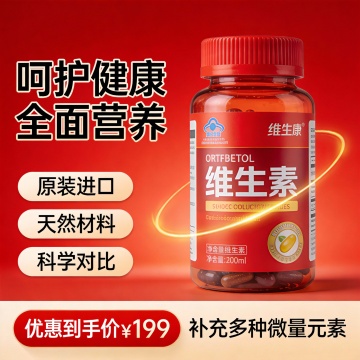 保健品促销海报,保持原图清新科技感的蓝白渐变色调风格,柔和的光晕效果与透明水泡元素环绕,中央放置不同类型的保健品瓶罐(如维生素片、益生菌胶囊、鱼油软胶囊等),瓶身采用蓝白主色调搭配其他辅助色(如绿色、橙色、紫色)以区分不同产品,产品名称以醒目蓝色大号字体展示,左侧以六边形信息框呈现产品核心卖点(如成分含量、功效特点等),整体构图遵循原有的视觉层级,背景为流动的弧形线条与光斑营造现代感,传达健康、专业、纯净的产品形象。