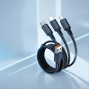 6个不同配色、不同样式、不同材质的数据线造型,采用上下两行对齐排列,浅色背景,每个数据线均清晰呈现USB接口和Type-C接口的标准形态,整体风格为简约产品摄影,高清晰度,高光柔和,阴影细腻,色彩饱和且区分明显,材质质感真实(如编织线、光滑塑胶、磨砂质感等),构图平衡,无任何文字、LOGO、二维码及多余装饰元素,专注展示数据线本身的形态与细节。