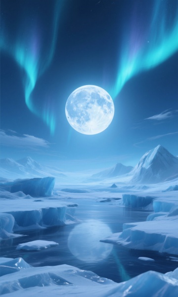 超写实摄影风格的雪山湖泊全景,纯净的蔚蓝色渐变天空与白雪覆盖的连绵山脉形成鲜明对比,前景是冰封湖面呈现出清晰的山脉倒影,山间萦绕着淡淡的薄雾增添层次感。画面整体采用高清晰度、细腻的光影处理,阳光从侧上方照射形成柔和的阴影过渡,雪山表面的纹理与冰面的裂痕细节清晰可见。轻盈的雪花从天空中缓缓飘落,部分雪花点缀在近景的冰面上,营造出宁静而圣洁的冬日氛围,色彩以蓝白为主色调,整体构图遵循三分法,保持画面的平衡与开阔感。