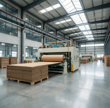 一个大型现代化仓库内部场景,采用写实摄影风格,高清晰度,明亮的工业照明从金属天花板上的长条灯具和筒灯均匀洒下,照亮整个空间。仓库内有高耸的蓝色金属货架,货架上整齐堆放着大量棕色纸箱,部分纸箱上印有黑色文字和标志。地面为灰色水泥地,多个蓝色托盘上堆叠着不同高度的纸箱,形成丰富的视觉层次。仓库空间宽敞,纵深延伸,展现出仓储的规模感和有序性,整体氛围专业、高效、整洁,具有强烈的工业仓储视觉特征。