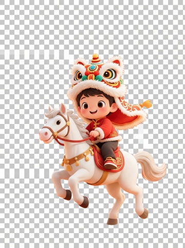 梦幻感与可爱感交融的3D风小马,鎏金线条勾勒出奢华质感,搭配彩虹祥云与喜庆红背景,尽显节日欢愉氛围。