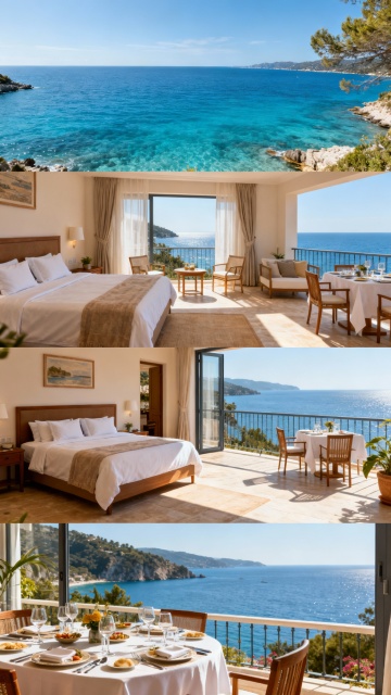 晴朗无云的淡蓝色天空下,波光粼粼的广阔海面,阳光照射在海面上形成无数闪烁的金色光点,远处水平线上有两艘静止的小船,海水呈现出由近及远逐渐加深的蔚蓝到靛蓝的渐变色调,海面微波荡漾,整体画面营造出宁静、开阔、明亮的氛围,具有高度清晰的摄影质感和自然光线效果。