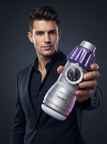 科技感与实景感交融,3D风金属质感剃须刀立于浪花岩石之上,光影流动间展现未来感与清爽清透的商务美学。