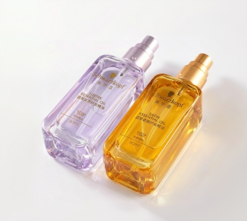 奢华感与优雅感交织,3D重拟物风设计,简约主义玻璃瓶身搭配金属喷头,面料风丝巾点缀,尽显高端质感。