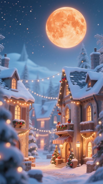 梦幻星空下,毛茸茸的童话小屋在微缩艺术风中闪烁温馨光芒,厚涂笔触与油画质感交织,营造出冬夜童话般的插画意境。