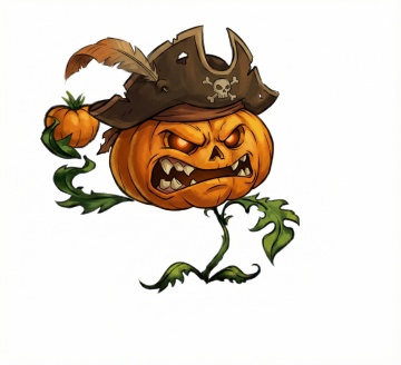 扁平风卡通南瓜戴巫师帽,拟人化设计搭配蝙蝠与魔法瓶,剪纸感元素营造喜庆趣味的万圣节氛围。