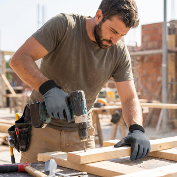 保持手套细节不变,分清正反面,一个外国帅哥穿着这双手套在工作