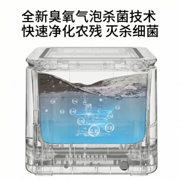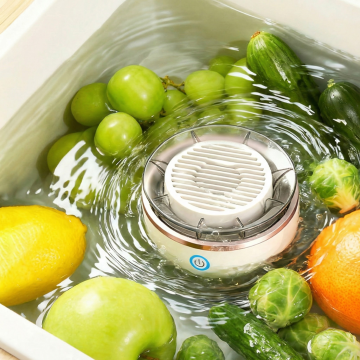 添加文字【旋转式果蔬机】【旋转净化黑科技,洗去农残 / 细菌,水果蔬菜吃着更安心】文字。不要显得画面特别空旷