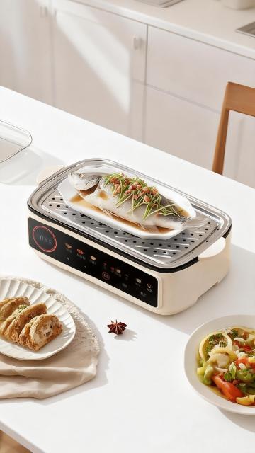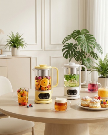 一个现代风格的电饭煲产品展示图,整体采用简约设计语言,主体为圆柱形结构,顶部为平面设计,带有微凹的开盖按钮和一个细长的蒸汽孔。机身正面有一个矩形控制面板区域,内有数字显示屏和多个功能按键,按键上有简洁的中文标识。产品采用不同配色方案,包括哑光白色与浅灰色渐变、磨砂质感的淡蓝色、珍珠光泽的米白色,以及带有细腻拉丝纹理的浅香槟金色等多种浅色基调的材质。整体造型线条流畅,边角圆润,体现出现代家电的精致感与科技感。背景为纯净的浅色(如浅灰色或乳白色),采用柔和的正面光源,光线均匀分布,在产品底部形成轻微的阴影,突出主体的立体感和材质细节,整体画面干净整洁,具有清晰的产品展示效果,类似专业的电商产品白底图风格,无任何文字、LOGO及多余装饰元素。