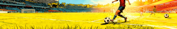 一张展现足球运动员动态瞬间的高质量摄影风格海报,画面中央是身着红色运动服的足球运动员正全力踢向足球的特写镜头,运动员姿态舒展充满力量感,足球上的黑白纹路清晰可见,绿色的足球场上草叶细节丰富。背景是夕阳西下时分的天空,橙黄色的阳光洒在整个场景上,形成温暖而富有戏剧性的光影效果,远处有模糊的其他球员和看台轮廓,天空中点缀着少量白色云朵。整体画面采用三分法构图,主体突出,色彩以红、绿、橙黄为主色调,光影对比强烈,高光和阴影细节丰富,营造出充满活力、激情四射的运动氛围,具有极强的视觉冲击力和信息传达效率,符合体育赛事宣传海报的设计感和目标受众审美。