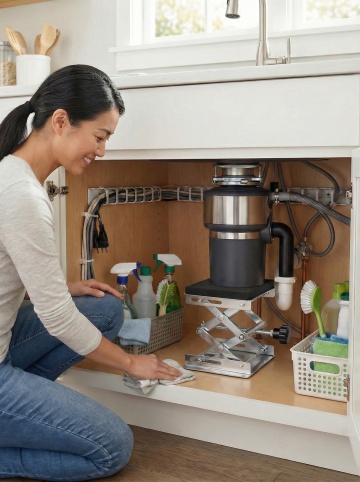 超写实3D渲染的现代厨房水龙头特写,极简主义设计风格,银色金属质感水龙头搭配可旋转出水口,安装在白色光滑人造石台面上,嵌入式不锈钢水槽带有圆形排水口,下方为深灰色哑光橱柜配银色长条形拉手,背景是浅色木质地板,柔和自然光从上方照射形成细腻高光与阴影,整体呈现干净、高级、宁静的氛围,注重材质纹理细节与空间层次感,不同角度展示水龙头在现代厨房环境中的多种布局搭配。