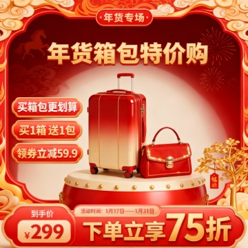 国潮风与鎏金浮雕边框交织,重拟物香水瓶配红绸金铃,喜庆奢华尽显中式年味,年货节专属礼遇。
