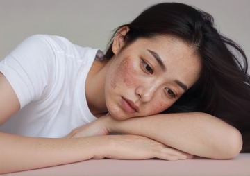 特写镜头下的女性脸部,柔和自然的光线从斜上方照射,营造出温暖细腻的氛围,展现出极其真实的皮肤质感,肌肤表面可见自然的细小毛孔、淡淡的雀斑和健康的光泽,呈现出通透、水润、光滑且富有弹性的理想状态,眼周肌肤细腻紧致,眉毛自然舒展,嘴唇呈现自然的淡粉色,整体画面聚焦于完美无瑕的肌肤,突出皮肤的纯净与健康之美,采用高清晰度的写实摄影风格,色调以温暖的米杏色为主,光影过渡柔和自然,构图简洁大方,背景虚化处理以突出主体皮肤的质感和细节。