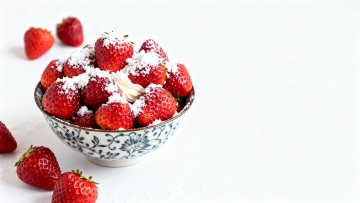 一堆新鲜饱满的草莓,表面覆盖着晶莹的水珠,散发着诱人的光泽,草莓的叶子呈现出鲜亮的绿色,背景为红色,整体画面色彩鲜艳,充满了生机与活力,具有高度的写实感和细腻的质感表现,光影效果突出,营造出一种新鲜、美味的氛围。