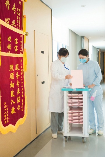 一个干净规整的现代化实验室场景,采用写实风格,以蓝白色调为主,光线明亮柔和,具有清晰的光影层次和细腻的质感表现。画面中可见身着白色防护服的研究人员在先进的白色和蓝色精密仪器设备旁工作,背景是带有规则几何图案的白色墙面。构图采用三分法,空间感强,整体氛围专业、严谨、科技感十足,适合作为背景使用。