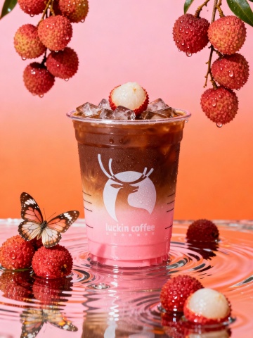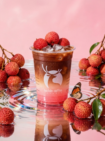 清新甜美,柔和水彩风插画,轻拟物质感,夏日荔枝饮品,自然花卉点缀。
